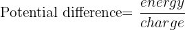 The potential difference (V) is measured using volts, energy (E) is calculated by using joules and charge (Q) is measured in coulombs.
