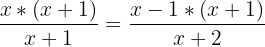 Just like in our linear equation example, I multiplied both sides by (x+1). This means that on the left hand side, I now multiply by (x+1) and then immediately divide by (x+1). And just like in our previous example, that means they cancel each other out, and I can remove them from the equation altogether: