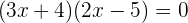 Since there are two factors, that means there are two solutions for ‘x’ - this is sometimes called a solution set. We just found them both! ‘x’ can either be -4/3 or 5/2.