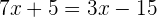It’s usually in secondary school that linear equations slowly start to creep into the curriculum. In year 7, we learn to solve simple equations, normally with one unknown. Here’s an example of an equation you might tackle around this time: